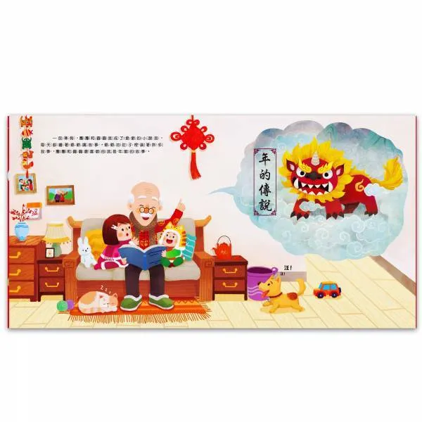 《歡樂過新年》讓孩子在親子共讀的過程裡,透過視覺上的衝擊,