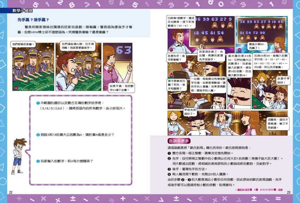 羨慕他的金頭腦嗎?那就跟著數學小偵探—HOW博士一起腦力激盪,協助糊塗警長辦案吧!