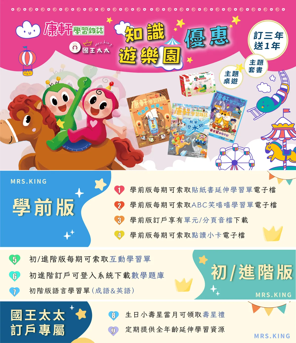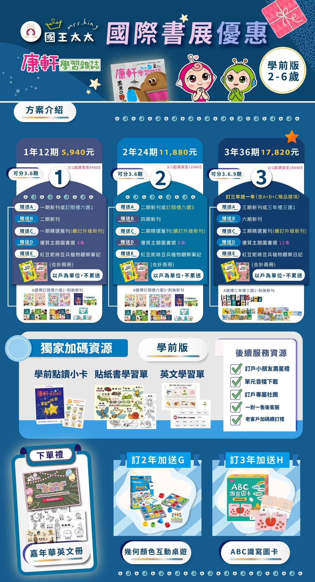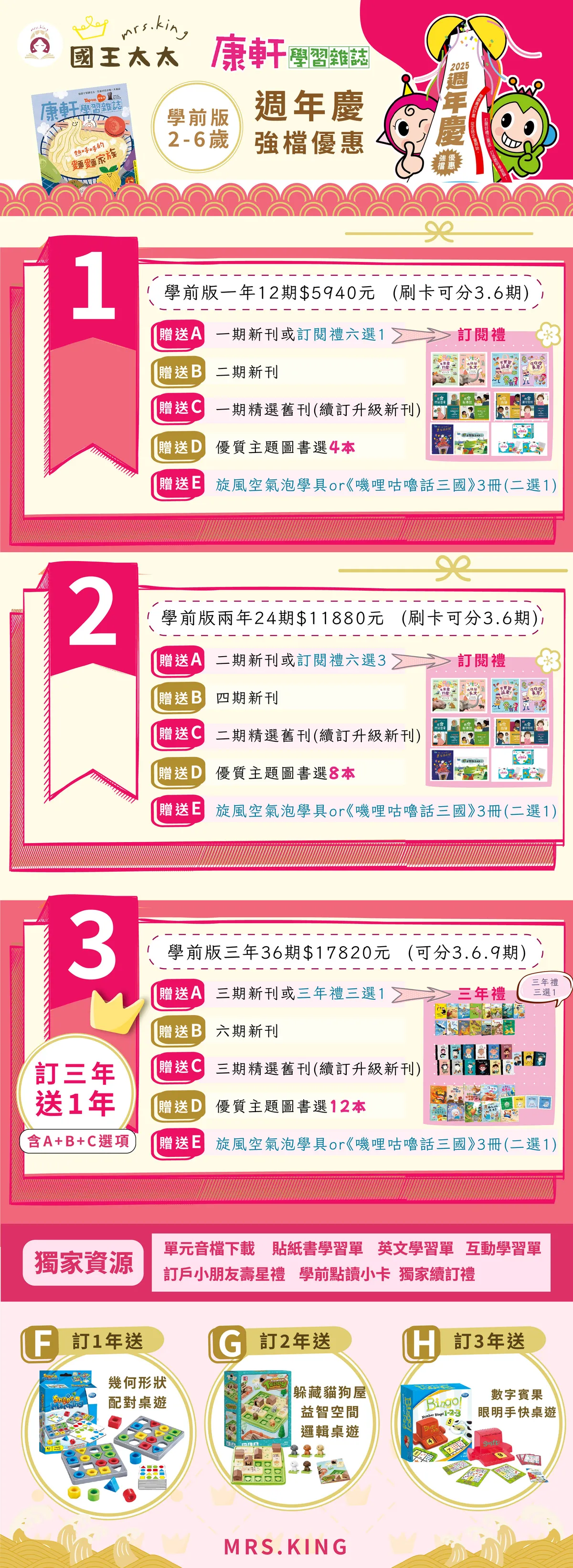 學前版適讀年齡:學齡前 (3~6歲適讀;2~3歲親子共讀),月刊,每月1日出刊