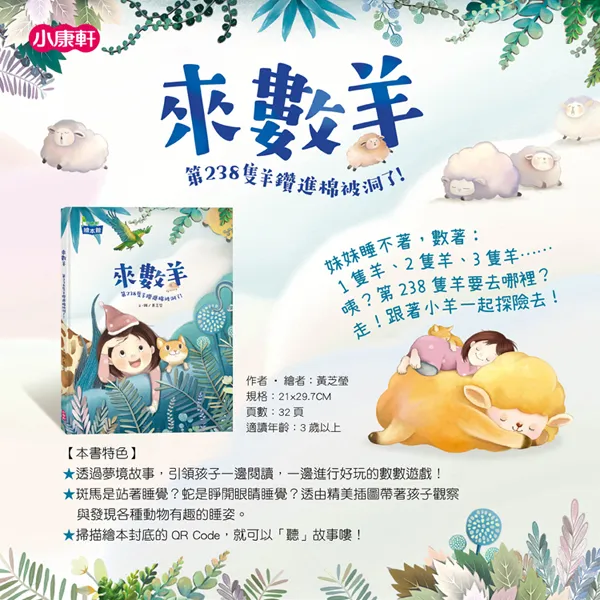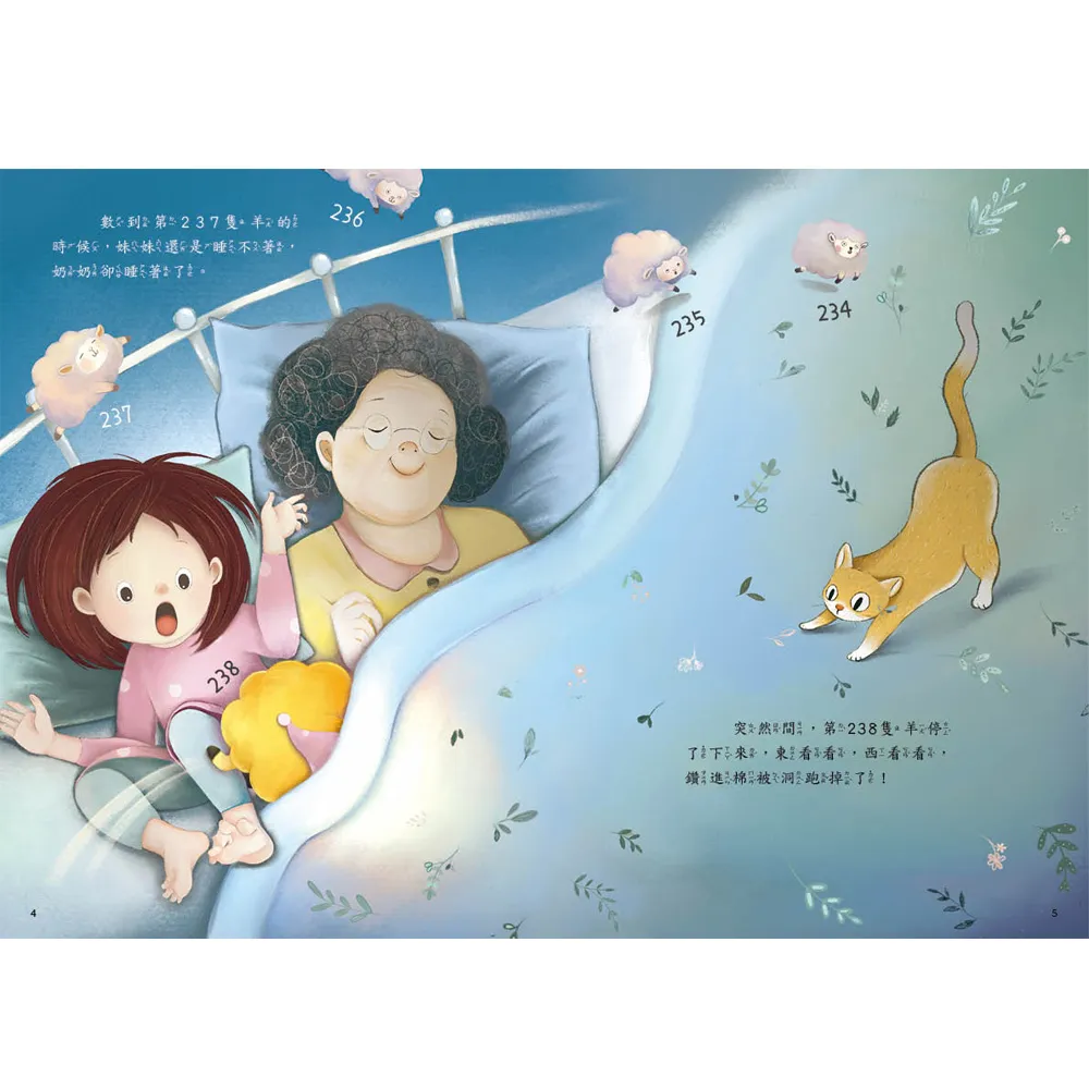 本繪本故事以「數羊」為開端,培養孩子醞釀睡前的情緒;