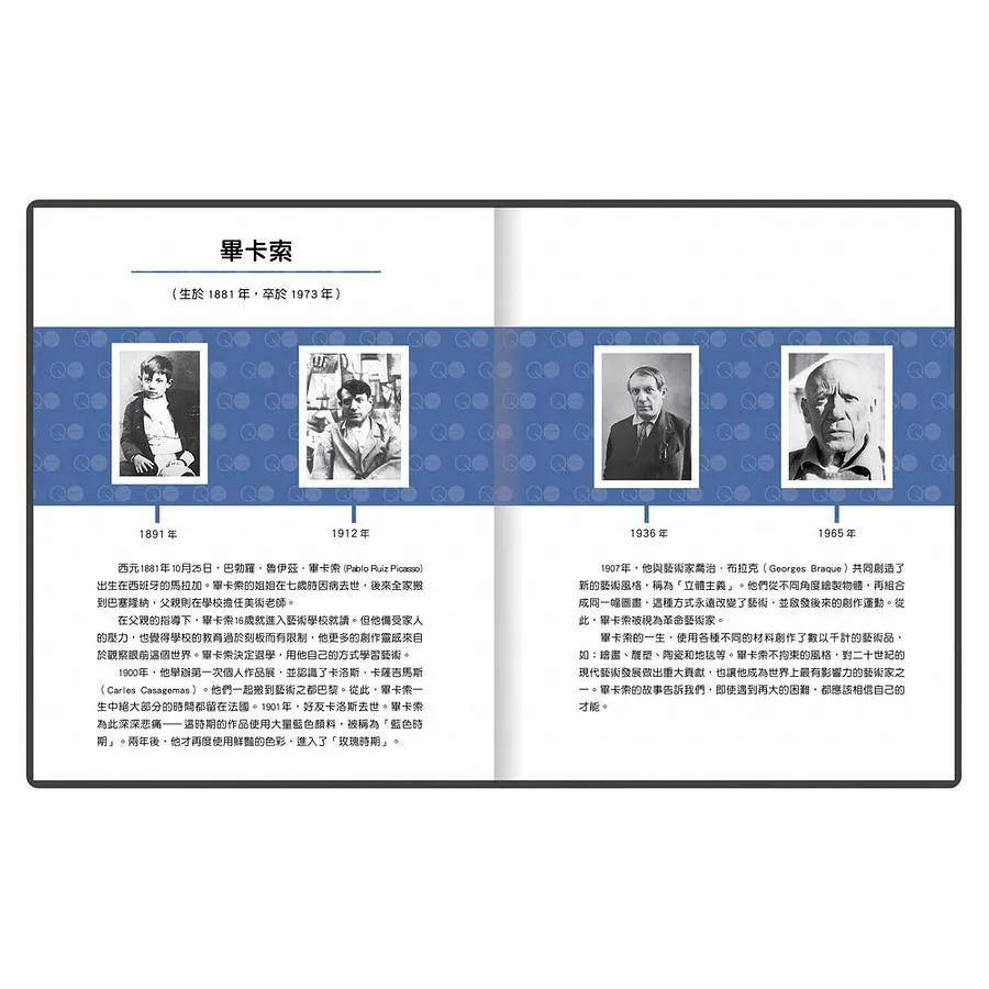 【內容簡介】“每個孩子都是天生的藝術家,只是長大成人的我們,該如何記得。”小不點畢卡索有極高天賦,年紀輕輕就精通各派藝術。他不願模仿,大膽揮灑濃烈色彩,創新角度顛覆想像。他的獨特曾不被世界理解,經歷家徒四壁,燒畫取暖。如今,畢卡索的美學帶著巨大的魅力與熱情,成為傳奇。傑出者成就歷史、創造經典、改變世界。而偉大的貢獻,都始於一個有夢的小不點。