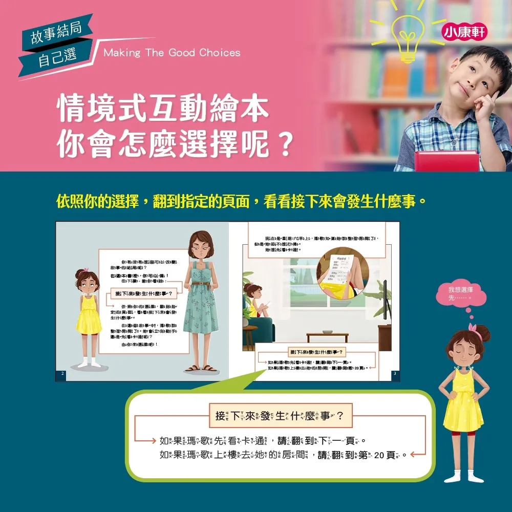 陪孩子跟隨書的情節,思考不同選擇的可能結果,是一本有趣的書。品格教育除了大人的身教,這本書還提供了新的教法。