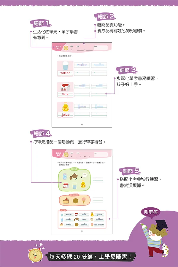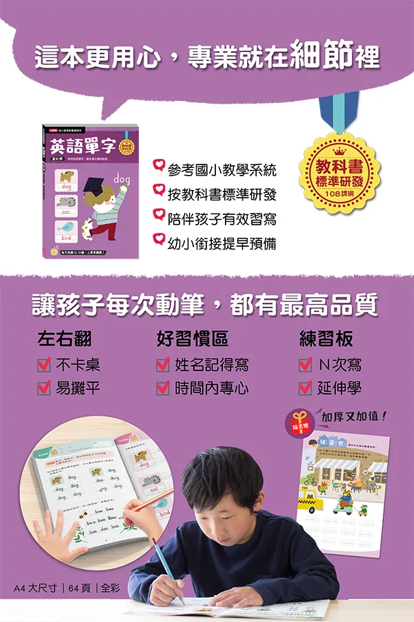 融入每一頁,讓零教養經驗的家長也能輕鬆帶領,有效協助孩子適應小學系統。
