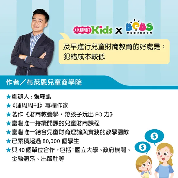 猶太人說過:「越早開始學習理財,就越早邁入獨立自主的人生。」使用正確、經過實踐過的有效方法和教玩具,可以讓大人透過輕鬆活潑的遊戲過程,和孩子聊出正確金錢觀。