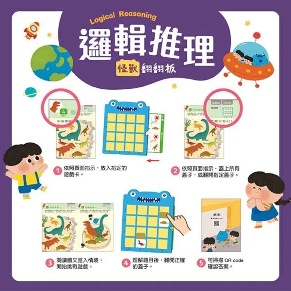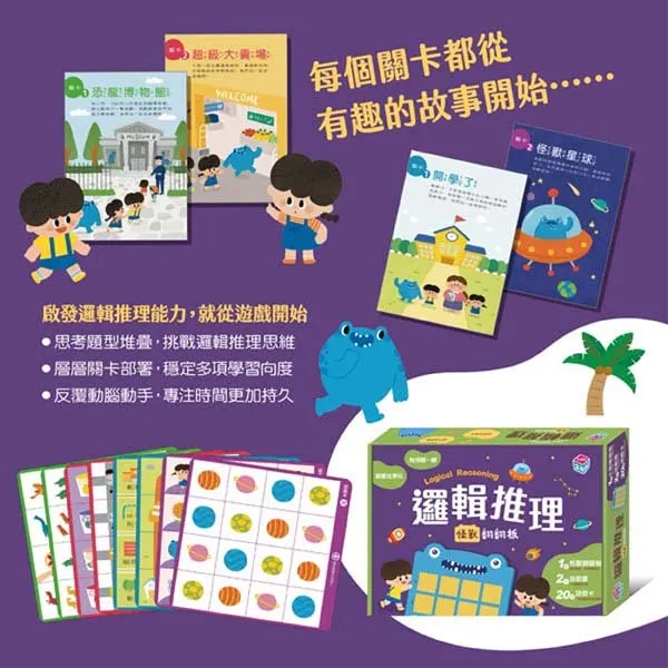 「邏輯推理」是一套結合故事情境的推理遊戲,操作學具能滿足孩子的興趣,並提供全面的發展。現在就跟著我們踏上旅程,一起協助孩子培養邏輯思考的能力。